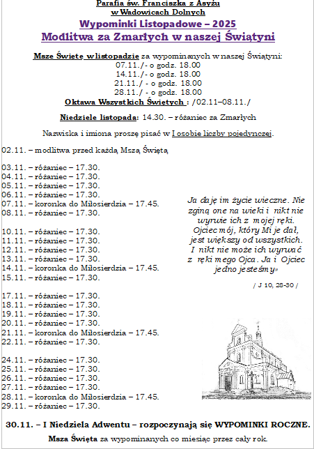 W każdy czwartek podczas Adoracji Pana Jezusa w Najświętszym Sakramencie od godz. 17.00.
